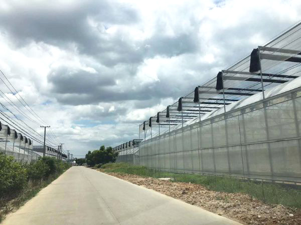 连栋温室是温室的一种升级存在,其实就是一种大温室, 把原有的单间温室,用科学的手段、合理的设计、好的材料将原有的独立单间模式温室连起来。连栋温室是一种经济型温室,它以优美的弧线形和造价低倍受用户欢迎。弧形室顶美观大方,视线流畅。结构用钢量小,保温性能好。制造成本相对较低,属经济型温室,适用于我国大部分地区。北方地区多采用双层膜温室,南方地区多选用单膜温室。能在可见光0.4-0.7微米范围内得到大光照,层膜充气后,可以形成厚厚的气囊,能有效地防止热量流失和阻止冷空气的侵入,采用双层充气膜后可大大提高温室保温性能,节省运行成本。覆盖材料顶部为聚乙烯无滴长寿膜覆盖,外层防紫外线,内层防集露;四周可以根据用户需要采用聚乙烯无滴长寿膜或聚碳酸酯中空板覆盖。