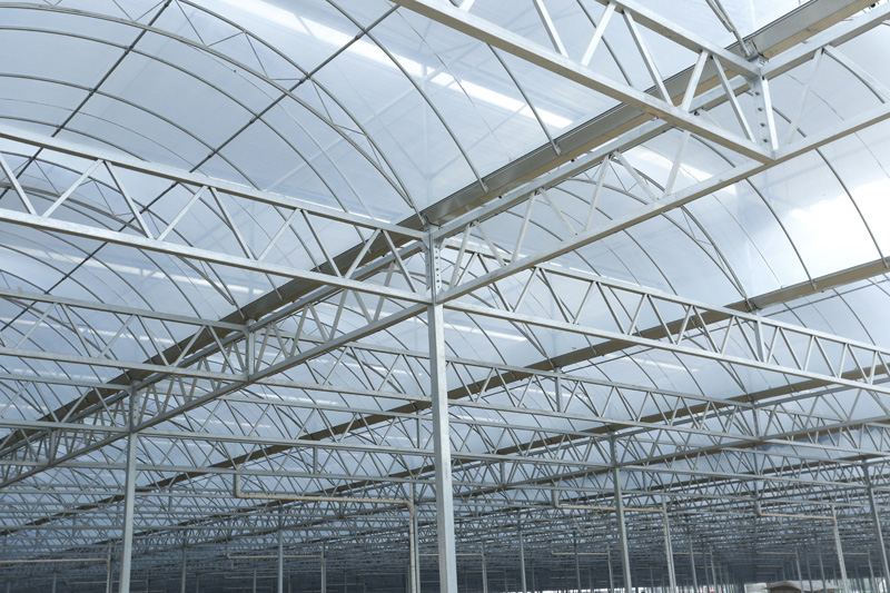连栋温室是温室的一种升级存在,其实就是一种大温室, 把原有的单间温室,用科学的手段、合理的设计、好的材料将原有的独立单间模式温室连起来。连栋温室是一种经济型温室,它以优美的弧线形和造价低倍受用户欢迎。弧形室顶美观大方,视线流畅。结构用钢量小,保温性能好。制造成本相对较低,属经济型温室,适用于我国大部分地区。北方地区多采用双层膜温室,南方地区多选用单膜温室。能在可见光0.4-0.7微米范围内得到大光照,层膜充气后,可以形成厚厚的气囊,能有效地防止热量流失和阻止冷空气的侵入,采用双层充气膜后可大大提高温室保温性能,节省运行成本。覆盖材料顶部为聚乙烯无滴长寿膜覆盖,外层防紫外线,内层防集露;四周可以根据用户需要采用聚乙烯无滴长寿膜或聚碳酸酯中空板覆盖。